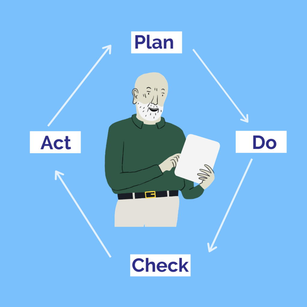 The model shown below is the four-phase Plan-Do-Check-Act cycle, as per the Aged Care Quality & Safety Commissioner.